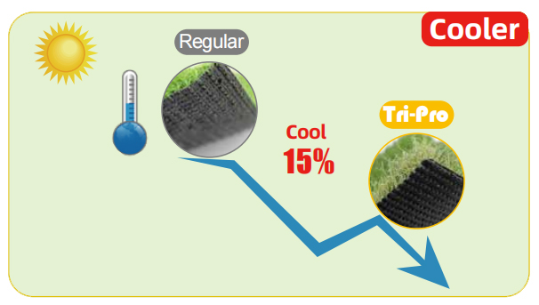 Cooler than regular synthetic grass by up to 15% and could reflect more infrared light.